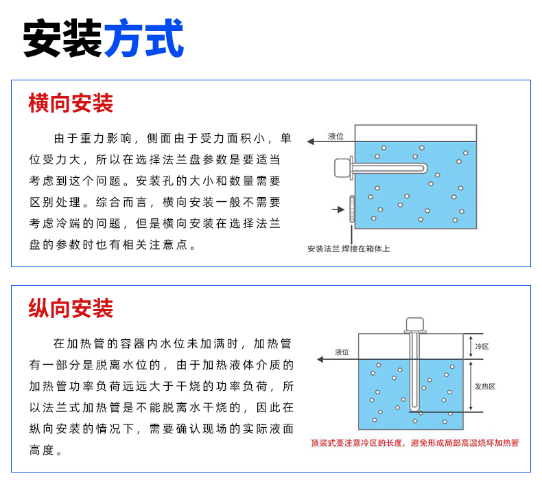 2.法兰式不锈钢加热管高度密集式、结构紧凑。由于整体短而密集,故稳定性好,安装无需支架。